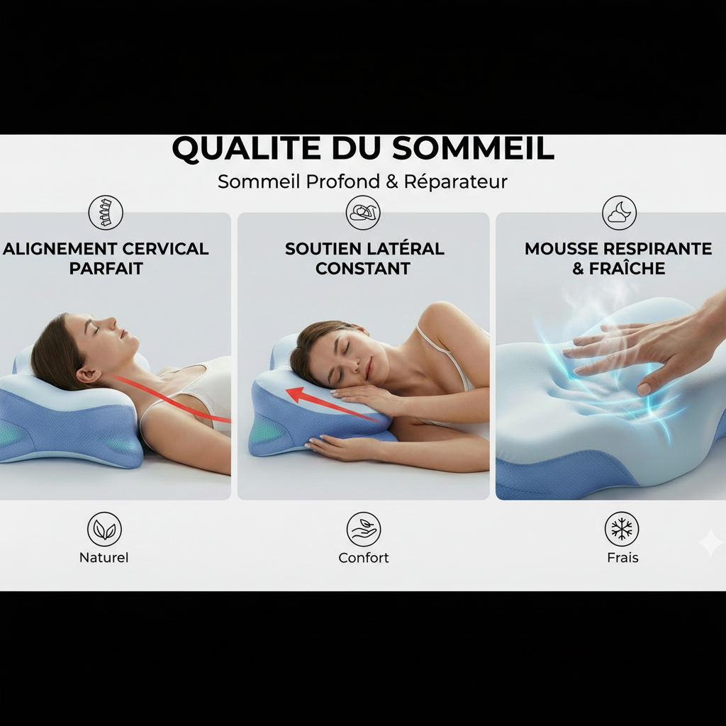 Les oreillers standards s'aplatissent et piègent la chaleur, ruinant votre sommeil. Cervicalm™ combine une mousse haute densité indéformable et un design ventilé pour un soutien médical qui dure toute la nuit, année après année.